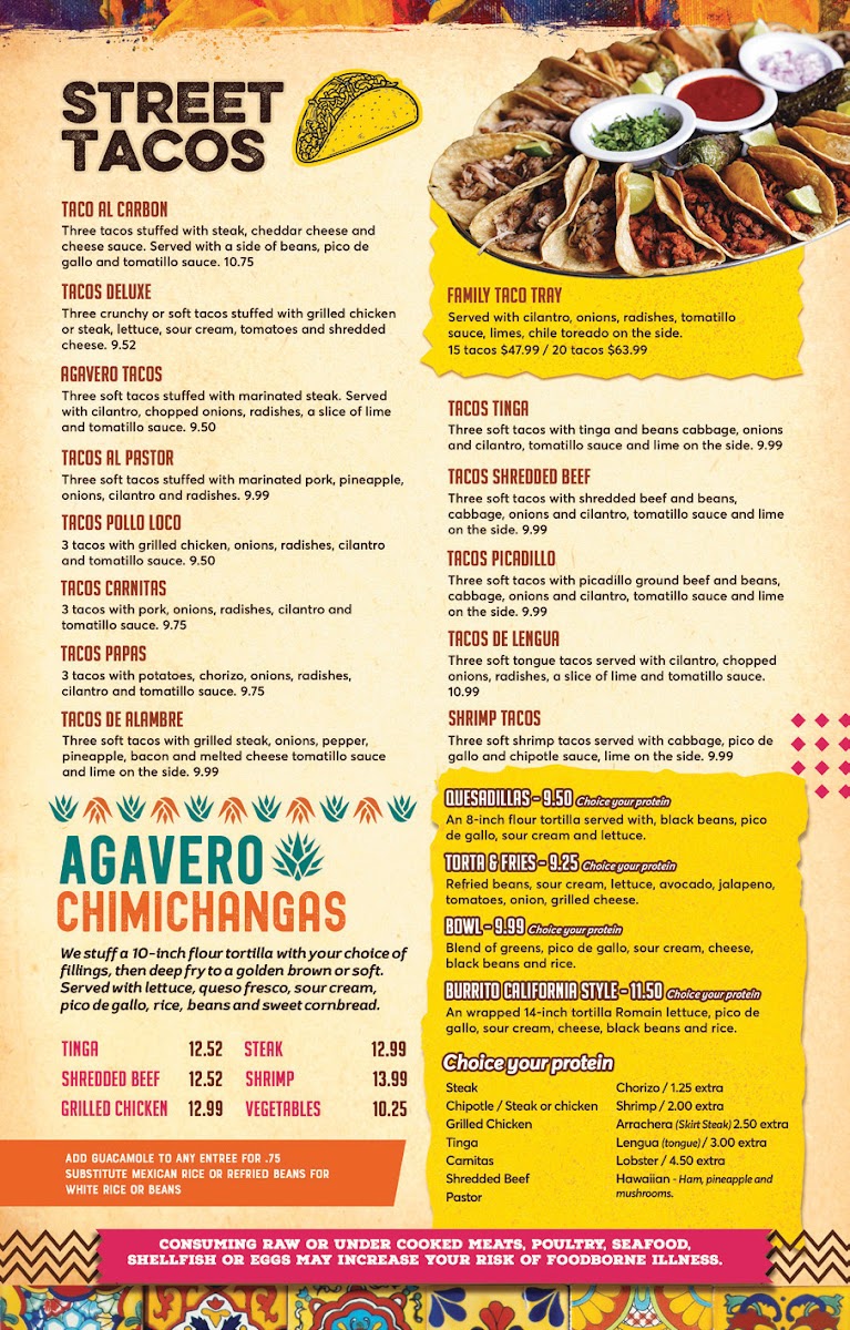 You’ll find the Agavero Grill & Cantina Menu packed with dishes that feel both comforting and full of personality, much like the spot itself at 604 N Bluff Rd in Collinsville, IL. As you look through the options, the mix of classic Mexican favorites and fun, flavor-forward plates makes it easy to wander from one craving to the next. There’s a relaxed vibe to the food, too, so you can move from tacos to fajitas or even something a little bolder without feeling like you’re overthinking it.